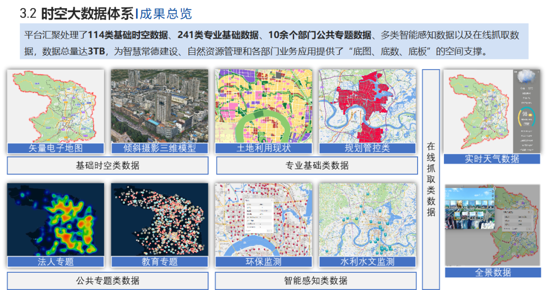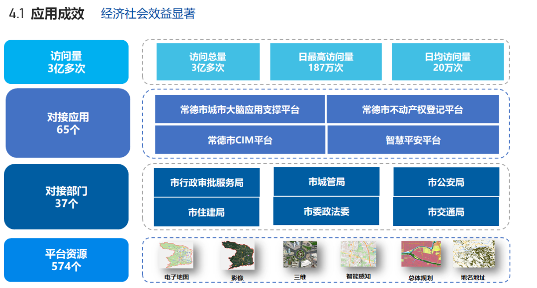 智慧常德时空大数据平台汇集了114类基础时空数据,241类专业基础数据,10余个部门的公共专题类数据,汇聚各部门的政务、交通、人口、经济、医疗、教育、公安等数据,为智慧常德建设、自然资源管理和各部门业务应用提供了“底图、底数、底板”的空间支撑,为政府综合决策、各部门各行业和社会公众提供智能化服务。