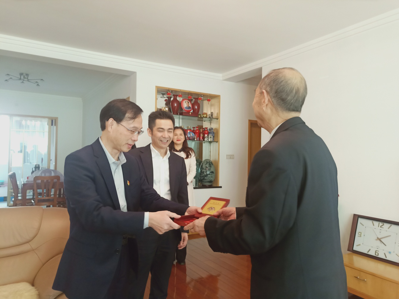 市自然资源规划局走访慰问参加过抗美援朝出国作战退休干部 来源:常德市自然资源和规划局 2020-10-26 08:44 字体:【小 大】 今年是中国人民志愿军抗美援朝出国作战70周年。10月23日下午,市自然资源规划局党组副书记、副局长胡少华走访慰问参加过抗美援朝出国作战退休干部李用中,代表市自然资源规划局党组向他致以亲切问候和崇高敬意,将中共中央、国务院、中央军委颁发的“中国人民志愿军抗美援朝出国作战七十周年”纪念章发放到李用中手中,并送上慰问金。市自然资源规划局四级调研员席在钢,人事科、机关党委、老干办负责人参加走访慰问。 走访慰问现场