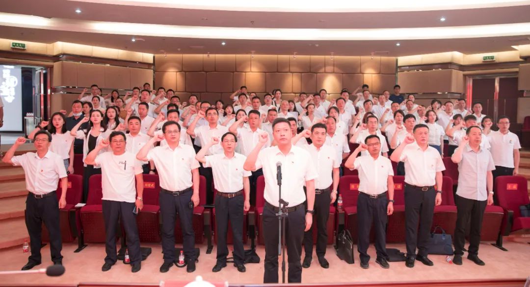 市自然资源规划局党组书记、局长王先波带领全体参会党员干部重温入党誓词