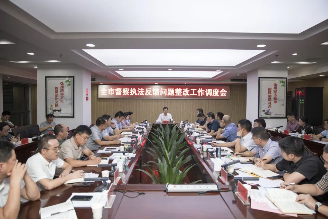 会议通报了督察执法反馈问题整改进展情况。各区县市局(分局)主要负责人分别汇报了工作进展情况,工作中存在的问题短板、工作建议,以及下步工作打算。