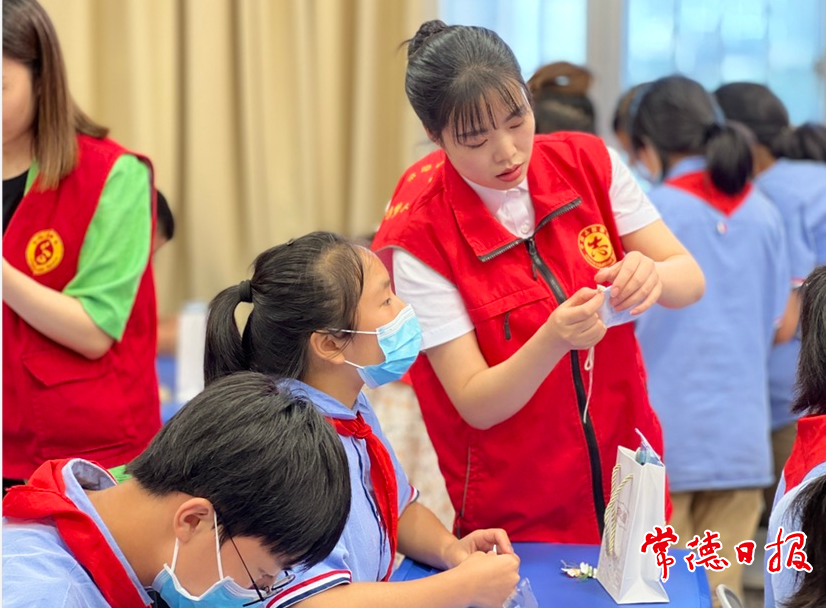 常德日报记者 伍银 通讯员 黄书冶 文/图 “端午香囊的主要成分是薄荷、艾草等,不仅有提神醒脑,还有驱赶蚊虫的作用。”6月2日下午,一场生动有趣的端午主题活动在市第四中学举行,市规划展示馆的讲解员们作为“老师”向学生们介绍了端午节的传统习俗,并详细讲解了香囊制作的相关知识。