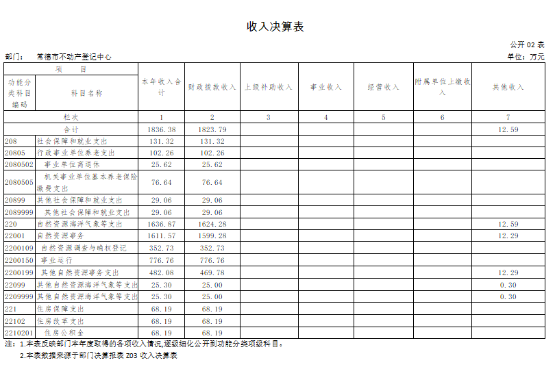 2023年度收入合计1836.38万元,其中:财政拨款收入1823.79万元,占99.31%;上级补助收入0万元,占0%;事业收入0万元,占0%;经营收入0万元,占0%;附属单位上缴收入0万元,占0%;其他收入12.59万元,占0.69%。