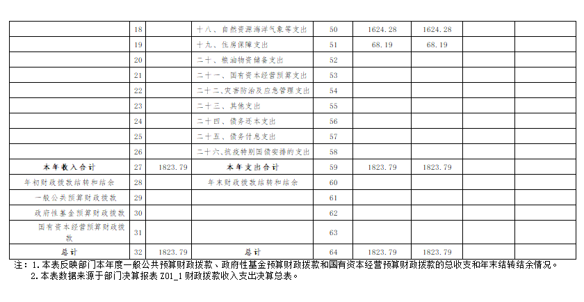 2023年度财政拨款收入总计1823.79万元,与上年相比,减少151.84万元,下降7.69%,主要是因为减少了项目拨款。