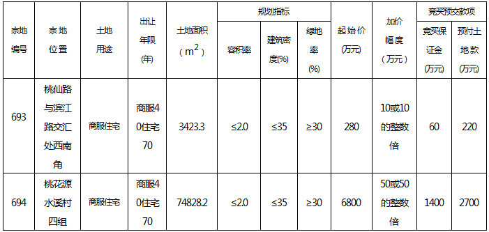 挂牌、报名地点:常德市泓鑫桃林五楼市公共资源交易中心国土项目报名室